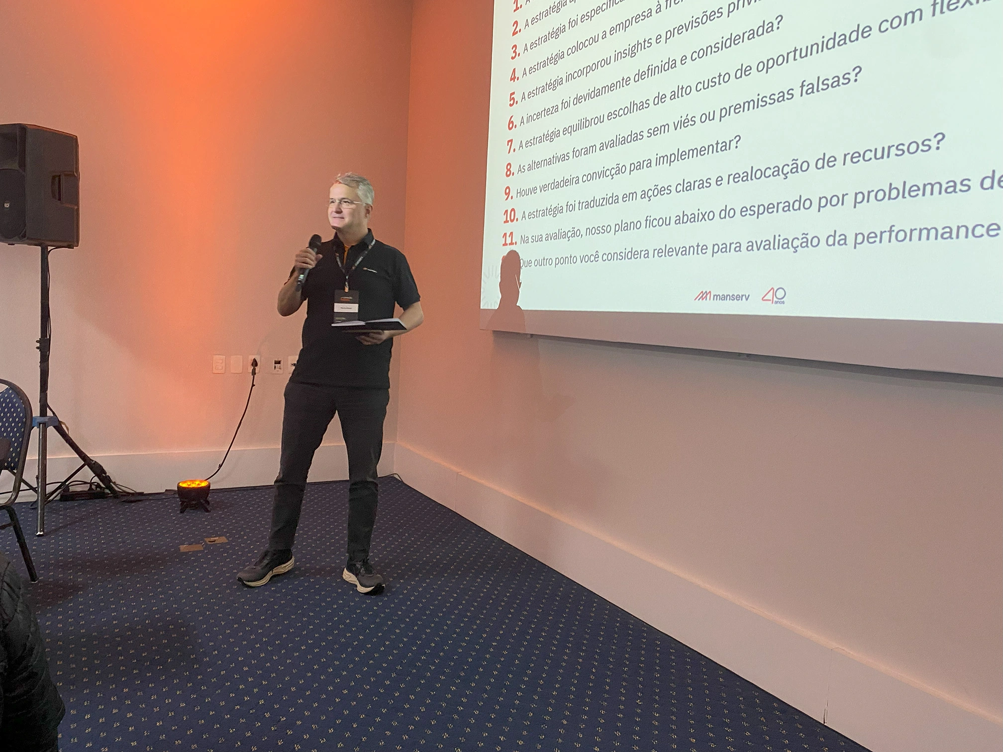 E os líderes participaram de uma análise crítica do Mapa Estratégico 20–25, avaliando acertos e aprendizados por meio de 12 questões que promoveram uma reflexão profunda sobre o negócio.